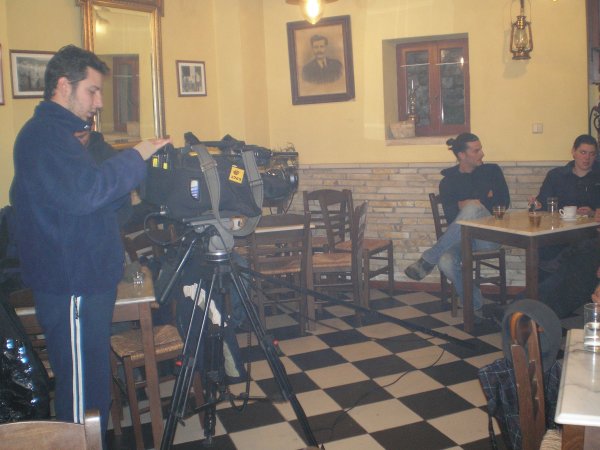 Reporter, Pavlos Zafiropoulos and his crew from Sky tv visited Paxos today to film locations and locals' activities. He spoke with fishermen, with members of the Loca Youth Council and the Youth Committee of the Cultural Villages and also interviewd the mayor. Besides the constant rain, the crew managed to take enough footage for their show next week.