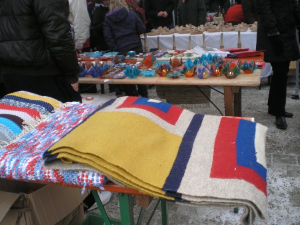 Λαϊκή αγορά και μεζέδες μετά μουσικής: η οργανωτική επιτροπή φιλοξενίας του Κίρχαϊμ πήρε την πρωτοβουλία να θέσει σε εφαρμογή τον θεσμό του «Πρεσβευτή Τοπικών Προϊόντων», μια ιδέα που επίσης προέκυψε από τις συζητήσεις στο Τόμμερουπ το 2009 σε μια προσπάθεια ανανέωσης κι εμπλουτισμού του θεσμού των Πολιτιστικών Χωριών. Στήθηκαν λοιπόν ωραιότατοι πάγκοι με προϊόντα διατροφής ή οικιακής χρήσης από τα 3 χωριά. Από τους Παξούς πωλήθηκαν χρηστικά είδη από φυσητό χρωματιστό γυαλί, που κατασκευάζει η Μάγδα Ρόκκου (με καταγωγή από τον Λογγό), χαλιά από Παξινίτικο μαλλί φτιαγμένα στον αργαλειό από την Χριστιάννα Αντιόχου, σαπούνι, γλυκά κουταλιού, λάδι από την Σία Κεϊκίδη και διάφορα πρωτότυπα ορεκτικά, πολλά από τα οποία ήταν κατασκευασμένα με πρώτες ύλες από τον Μπάμπη και την Κατερίνα Δούη αλλά μαγειρεμένα και συσκευασμένα από την Βασιλική Καρούνου, που δραστηριοποιείται στην Κέρκυρα. Παράλληλα με την αγορά στον χώρο του σχολικού γυμναστηρίου του Κίρχαϊμ στήθηκαν δύο μεγάλοι μπουφέδες (ένας για Παξινά εδέσματα κι ένας για τα Πορρουάνικα). Ο κόσμος μπορούσε να περνά να παίρνει το μεζέ (παξινά κουλούρια (από τον φούρνο του Ρομπόλα), χταπόδι ξυδάτο, παστιτσάδα, ποικιλία πατέ) και το ούζο του από τον δικό μας πάγκο και να προχωρά στην αίθουσα όπου έπαιξε το συγκρότημά μας μουσική της περιοχής μας ενώ εμφανιζόντουσαν φωτογραφίες από τοπία του νησιού μας. Οι Αυστριακοί παρουσίασαν την χορωδία του χωριού τους με τις παραδοσιακές τους φορεσιές και οι Ισπανοί για μια ακόμη φορά μας έδωσαν δείγμα τοπικών χορών συνοδεία γκάιντας και με την μαγευτική φωνή της Μάρτα.