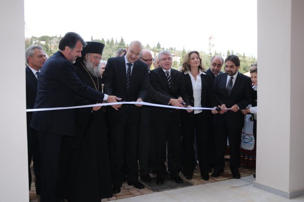 Των εγκαινίων προηγήθηκε η υποδοχή των επισήμων από το Δήμαρχο και τα μέλη του Δημοτικού Συμβουλίου στην αίθουσα του Δημοτικού Συμβουλίου. Ο Δήμαρχος προσφωνώντας ανέφερε: «Είναι μεγάλη μας χαρά που ο Δήμος Παξών υποδέχεται καταρχήν τον ντόπιο Υπουργό Δικαιοσύνης. Το Δημοτικό Συμβούλιο ομόφωνα αποφάσισε σε προηγούμενη συνεδρίασή του να συγχαρεί τον Βουλευτή του Νομού κ. Νικόλαο Δένδια για την υπουργοποίησή του στο Υπουργείο Δικαιοσύνης, θεωρώντας ότι η μεγάλη τιμή που του έγινε από τον Πρωθυπουργό της χώρας, αποτελεί τιμή και για την ιδιαίτερη πατρίδα του τους Παξούς, για εμάς. Το Δημοτικό Συμβούλιο του εύχεται καλή επιτυχία στο έργο που του ανατέθηκε και δημιουργική πορεία επ΄ ωφελεία του τόπου». Ακολούθησε συζήτηση και κατάθεση αιτημάτων για θέματα Παιδείας στον αρμόδιο Υφυπουργό. Στη συνέχεια επίδωσε στον Υπουργό την απόφαση και πρόσφερε στους επίσημους το μετάλλιο του Δήμου Παξών.